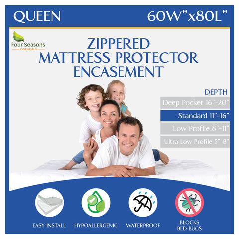 Zippered Mattress Protector - Bedbug proof Waterproof Encasement (5"-8") - Ultra Low Profile Mattress Protector